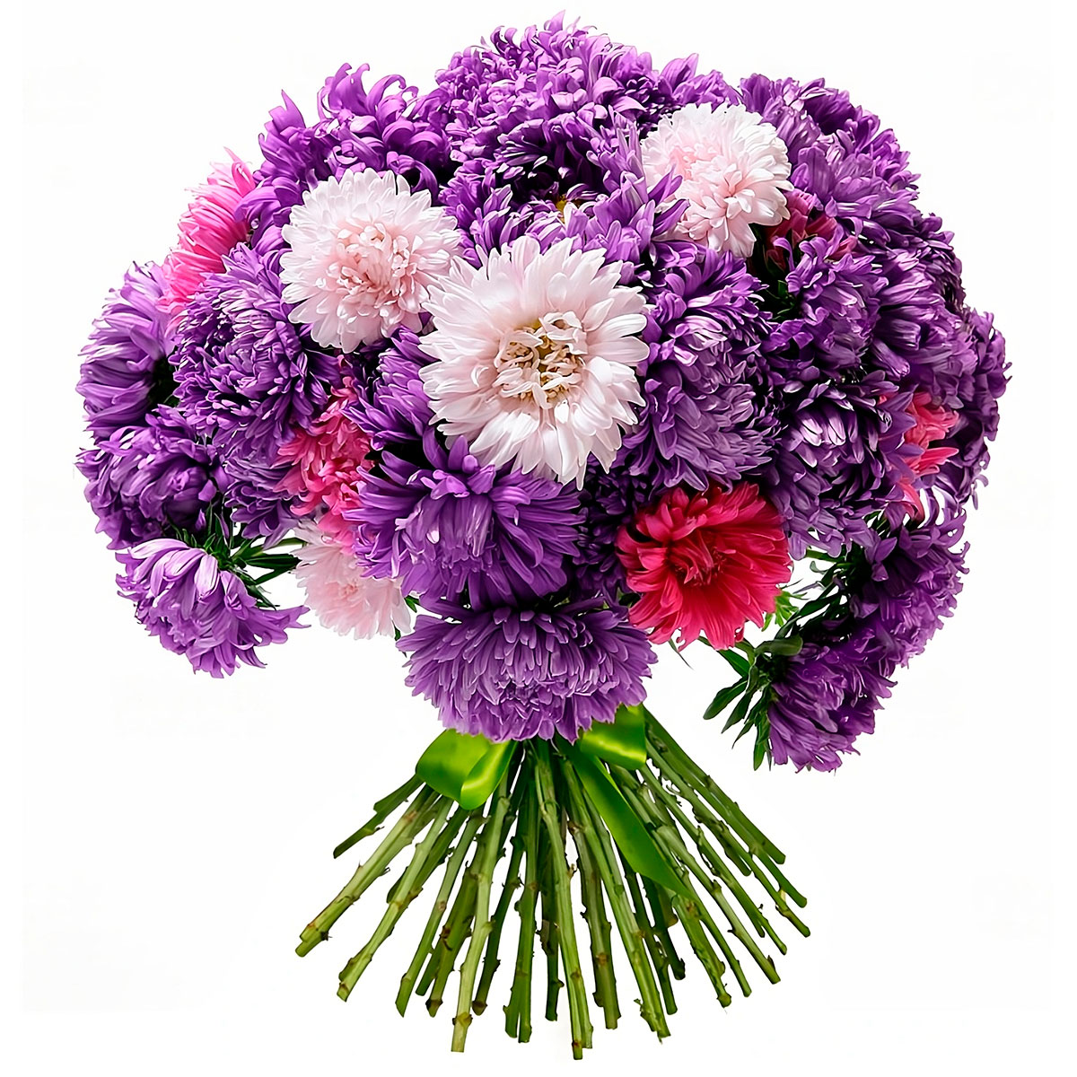 Одноголовые сиреневые хризантемы, белые, розовые.