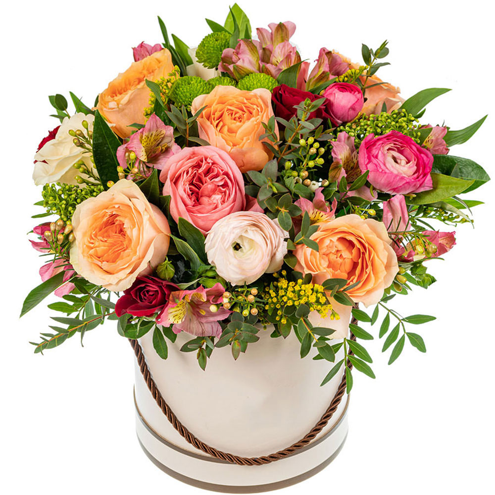 | Состав | Альстромерии, Пионовидные розы, Ранункулюсы, Розы, Хризантемы |